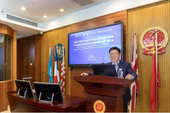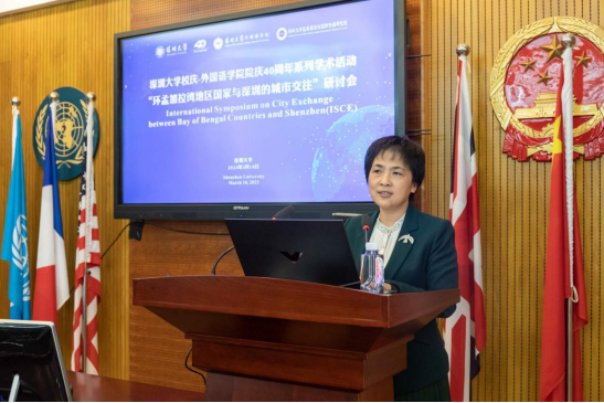 2023年3月10日,由深圳市委外办指导,深圳大学外国语学院、区域国别与国际传播研究院、环孟加拉湾地区研究所联合主办的“环孟加拉湾地区国家与深圳的城市交往”研讨会以线上线下结合方式在深圳大学粤海校区汇文楼模拟联合国会议室成功举办。本次会议邀请中印两国知名专家学者共商环孟加拉湾地区国家与湾区都市的城市交往与发展互鉴,研讨议题包括“环孟加拉湾地区国家与中国的城市交往与人文联系”“环孟加拉湾地区国家的政治经济与社会发展”“环孟加拉湾地区国家的国际科技和创新合作”。